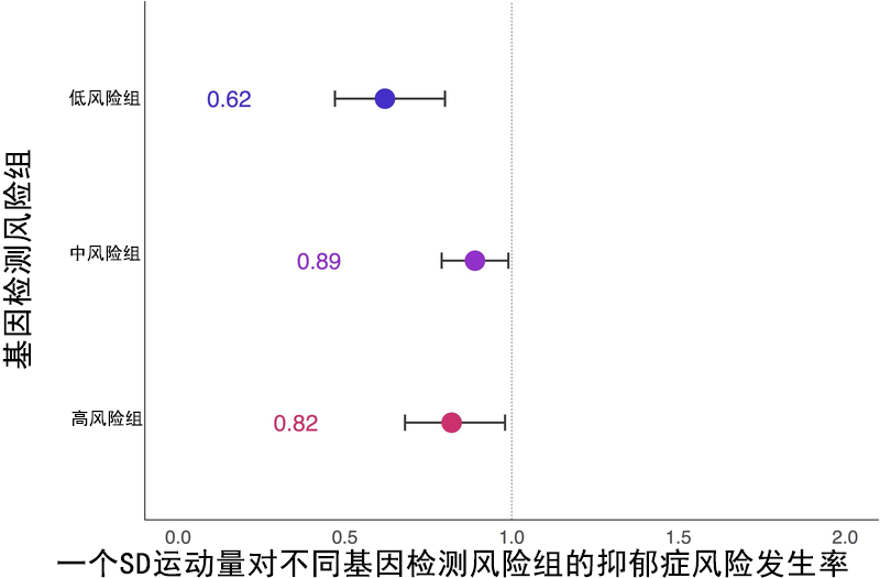 运动对不同基因检测风险组的抑郁症发生的降低作用